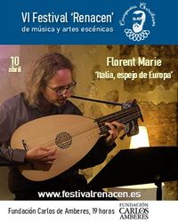 Florent Marie. 'Italia, espejo de Europa' El laúd, ¿fue sobre todo un instrumento utilizado por los trovadores para apoyar su canto con algunos punteos de las cuerdas? ¡Desprendámonos inmediatamente de esta imagen extremadamente simplificada, incluso falsa, que todavía hoy se transmite a veces! De hecho, el laúd fue el instrumento preferido de los círculos cultos, de los poetas y monarcas de los siglos XVI y XVII, por sus amplias posibilidades musicales, y la gran delicadeza sonora que lo caracteriza. De hecho, es un instrumento capaz de reproducir todas las voces de una obra, siendo apto para todas las formas de acompañamiento, así como para los solos, por lo que su lugar puede compararse con el del piano en la actualidad. Este programa tiene como objetivo poner de relieve las influencias mutuas entre Italia y el resto de Europa en el repertorio para laúd durante el Renacimiento. Así, los italianos eran particularmente aficionados a la canción francesa, y sublimaron estas hermosas piezas con un exquisito tratamiento para laúd. | |