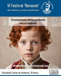 Ensemble Quadrivium. 'Cromatismo en la polifonía sacra inglesa' Este programa supone un viaje testigo del desarrollo y cambio en las fórmulas compositivas de la música sacra inglesa desde la época tardo medieval, de una relación estrecha con el estilo y armonías de la música popular, hasta un nuevo estilo inglés influenciado por el viejo continente que fue evolucionando en uso más suave de la música dando lugar a un estilo más limpio y fluido. Sopranos: Raquel Rodríguez, Emilia Polewka, Nuria Rodríguez; Altos: Pablo Sáinz, Zsolt Nagvóti, Laura Cobos; Tenores: Matías A. Noisel, Xavier Dupac, Eduardo Duque; Bajos: Claudio Jiménez, Wouter de Wylder, Lennin Cid. | |